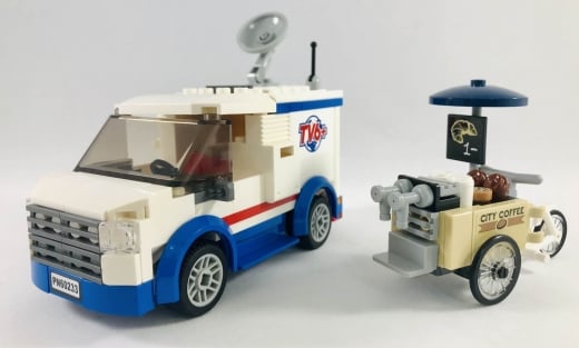 Setin yıldızı ise bizce TV minibüsü. Son yıllardaki LEGO City setlerinde gördüğümüz en iyi araç tasarımlarından birine sahip. Her ne kadar bir miktar LEGO City banka minibüslerine benzese de iç ve dış tasarım olarak daha renkli ve TV kanalının logosu dışında sticker kullanılmamasına rağmen oldukça başarılı sonuçlar elde edilmiş. İçi de aynı şekilde, bir TV minibüsüne uygun olarak tasarlanmış. Oynanabilirlik anlamında da anteni, merdiveni ve açılabilen kapıları ile tatmin edici.