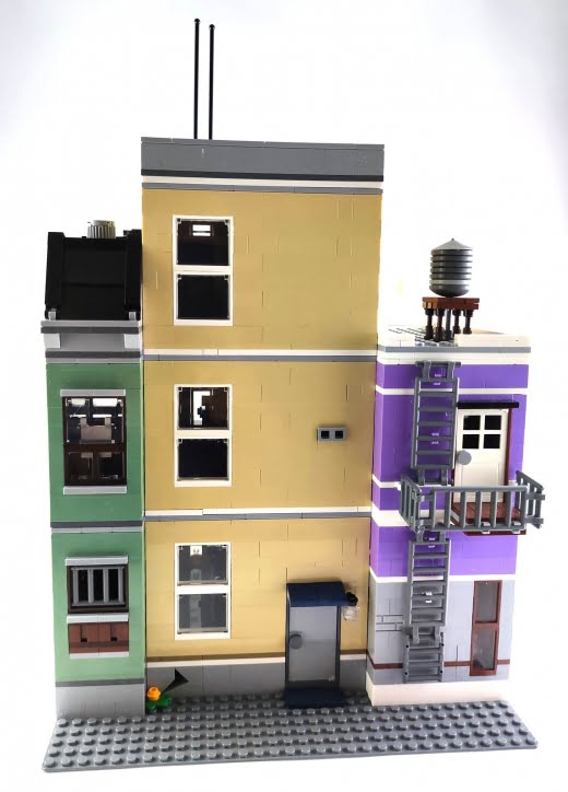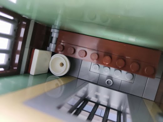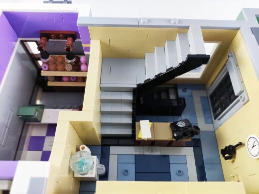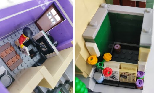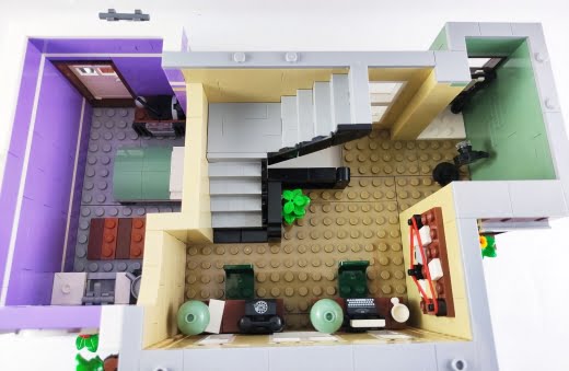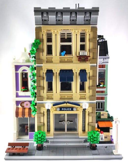 Tüm modüler binalar gibi kat kat inşa etmeye devam ediyorsunuz ve toplamda üç katlı bir bina bizi bekliyor. İlk katta polis merkezinin girişi ve ayrı bir girişe sahip bir donut dükkanı yer alıyor. İç mekanlar diğer modüler setlere göre nispeten sade olsa da hikayeyi anlatacak tüm detaylara sahip. Tabii, ilk katın zeminlerin tamamının düz parçalar (tile) ile kaplı olması da yine modüler binaların ilk katlarının olmazsa olmazı.