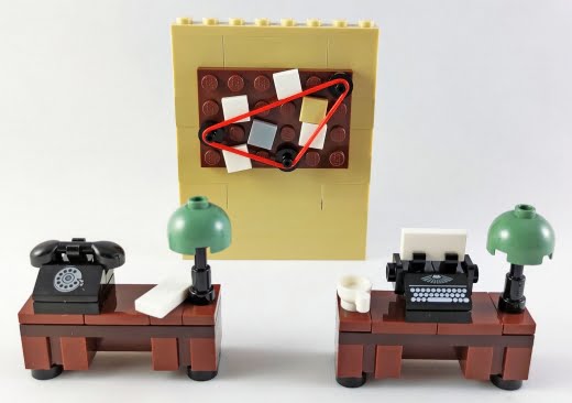 Polislerin çalışma alanı ise baskılı telefon ve daktilo parçası ve suçluların fotoğraf çektirdiği alan gibi keyifli detaylarla dolu. Özellikle de delillerin yer aldığı duvar panosu, donut hırsızını yakalamak için ciddi ölçüde çalışıldığına işaret ediyor.