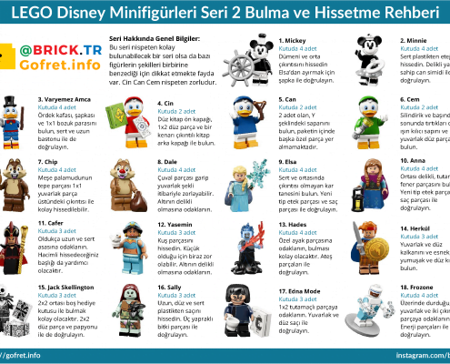 LEGO Disney Minifigürleri seri 2 kapalı paketleri içerisinde nasıl bulunur ve hissedilir, kutu içerisinde kaç adet vardır gibi soruları cevapladığımız rehberimizi aşağıdaki bağlantıdan PDF olarak indirebilir ya da aşağıdaki görsele tıklayarak inceleyebilirsiniz: