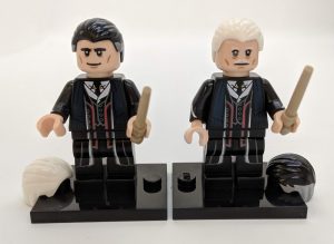 Kolay hissedilen uzun çubuğu ve destekleyici iksir şişesi ile ayırt etmesi kolay bir minifigür olsa da ayrı bir yeri var. Her kutuda bir tane olan Percivial Graves minifigürünün tek ayırt etme yöntemi olan iki adet saç parçası Moody’de de mevcut. O yüzden çubuğu hissedebilmek doğru sonuca varmak için önemli.