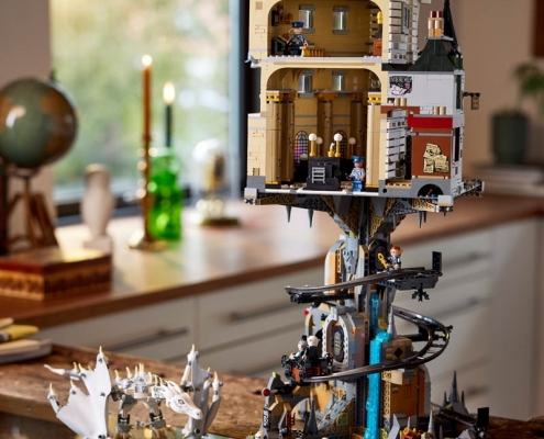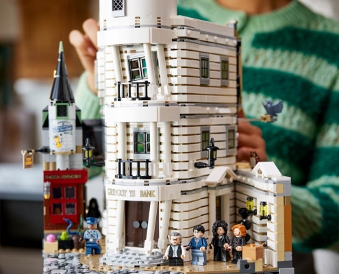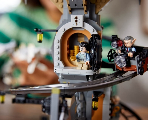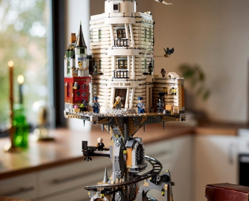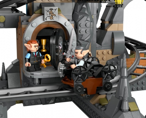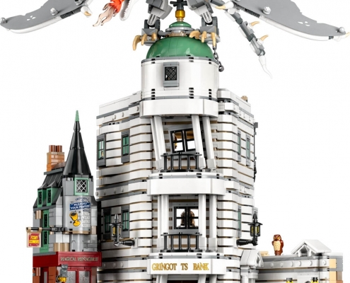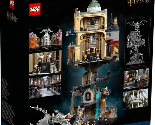 Bankanın tasarımını farklı kılan en önemli öge, sadece dış cephesini değil, aynı zamanda yer altındaki kasaları ve bu kasalara giden treni de içermesi. Tabii istenirse zemin üzerinde de sergilenebiliyor. Sette 13 çok çeşitli minifigürün yanı sıra, Harry Potter ve Ölüm Yadigârları’nda gördüğümüz Ukrayna Demirgöbeği ejderhasını da içeriyor. Ana model 36 cm yüksekliğinde, 32 cm genişliğinde ve 25 cm derinliğinde. Tüm bileşenleri bir araya getirildiğinde ise yüksekliği 75 cm’ye ulaşıyor.