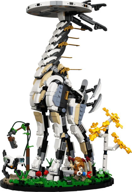 This LEGO set for adults will take builders into an adventure world through Aloy, a fierce machine hunter and the Tallneck, the iconic and awe-inspiring machine Aloy uses to explore nearby areas in her mission to restore order and balance in Horizon Forbidden West. Included in this set is a brand-new headpiece for Aloy, the Watcher machine that comes with a choice of blue, yellow or red eyes and her bow and brick-built spear, alongside the authentic Tallneck machine, with a smooth, disc-shaped head and long slim legs to add striking features within the model. Fans can finish their build by adding the beautiful landscape details like the brick-built birch tree, tall grass and a rusty stoplight, completing the centerpiece for its display moment.