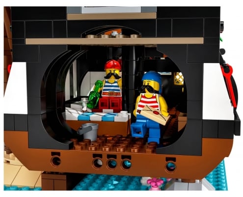 - Rooms including a captain’s cabin, kitchen, tavern, bedroom and jail cell are filled with accessories. The shipwreck also rebuilds into a ship inspired by the 1989 LEGO® model, Captain Redbeard’s Black Seas Barracuda.