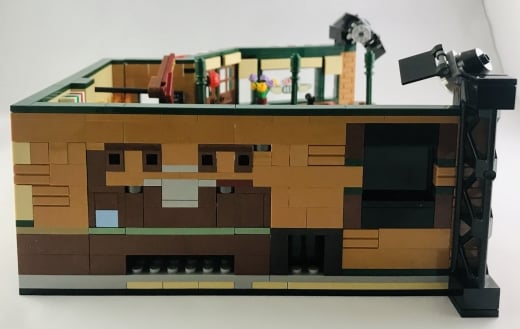 Yine stüdyo ışıklarından da anlayabileceğiniz üzere, set önden görünümde sergilenecek şekilde tasarlanmış. Setin dış kısmı, aynı modüler binaların içe dönük köşeleri gibi sergilemeye pek uygun olmayan bir görünüşte.