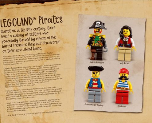 Setin içerisinde toplam sekiz minifigür ve iskelet, domuz ve köpek balığı figürleri yer alıyor. Ayrıca her minifigürün bir kılıç, tabanca ya da tüfek aksesuarı var.