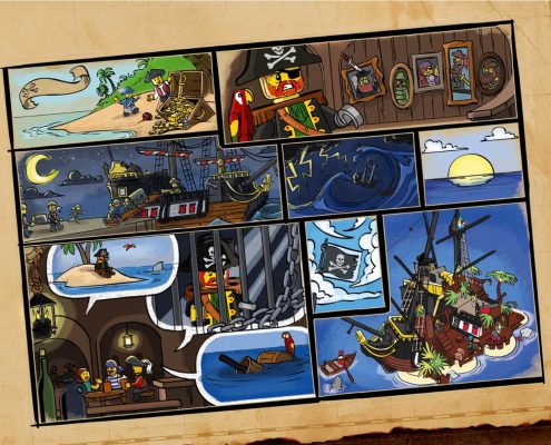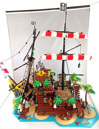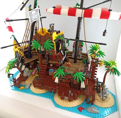 Orijinal ürün fikrine kıyasla daha renkli bir tasarımı olmasıyla dikkat çeken bu setin asıl özelliği ise ürün fikrindeki gibi bir adaya yerleştirilmiş bir gemi enkazının yanı sıra LEGO korsanlarının meşhur gemsi 6285 Black Seas Barracuda’dan esinlenen bir gemiye dönüştürülebiliyor olması.