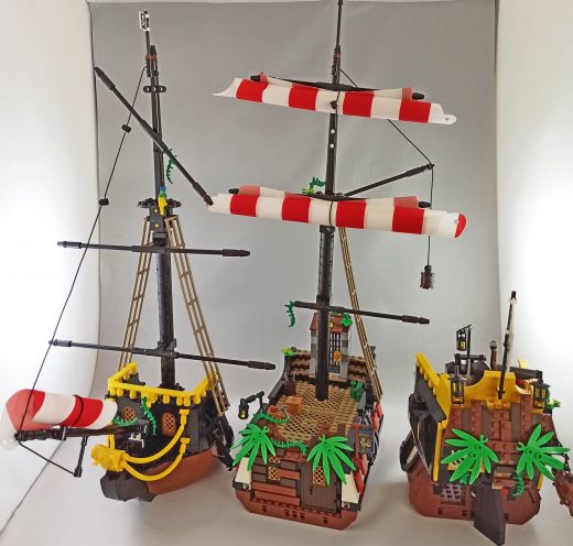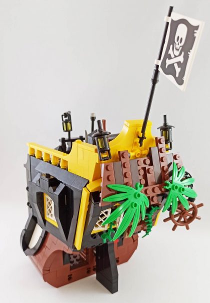 Bu durumda, ada zemini dışında, biraz değişiklikle tam bir gemiye dönüşebilecek üç gemi parçası ortaya çıkıyor. Bu haliyle bile modelin yüksekliği oldukça fazla. Bu modüler yapı, setin taşınmasını da kolaylaştırıyor.
