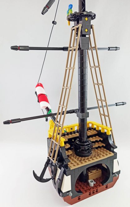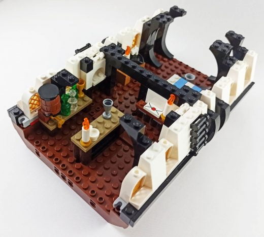 Son olarak da Redbeard’in kamarasını içeren kıç güvertesini inşa ediyorsunuz. Üç katlı bu bölümün alt katında mutfak, orta katında kaptanın kamarası ve üst katında da geminin dümeni yer alıyor.