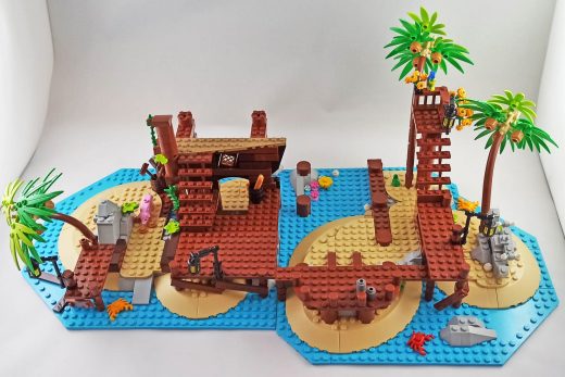 Setin arka tarafında bağlantı yerleri fazla açıkta kaldığı için sergilemeye ön tarafı kadar uygun değil ama oynanabilirlik anlamında devamlılığında bir eksiklik yok. Minifigürler, adadaki her yere merdivenler aracılığıyla rahatlıkla ulaşabiliyor.