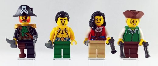 İlk grupta inceleyeceğimiz minifigürler soldan sağa Captain Redbeard, Tattooga, Lady Anchor ve Robin Loot.
