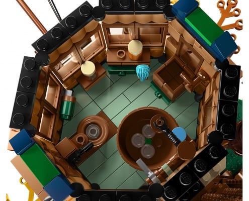 Ağaç, değiştirilebilir, yeşil yaz yaprak parçaları ve sarı ve kahverengi sonbahar yaprak parçaları içerir. Bu parçalar ve zemindeki muhtelif bitki parçalarının tümü; sürdürülebilir, bitki bazlı polietilen plastikten üretilmiştir. Ağacın tepesi ve odaların çatıları, kolay erişim için çıkarılabilir şekilde tasarlanmıştır. Model, inşa edilebilir piknik masası ve koltukları, salıncak, kamp ateşi, hazine avı için hazine haritası ve gizlenmiş bir mücevher parçası ve yatak odasının balkonundan sarkıtılan sepet gibi oynama konusunda ilham veren özellikler içermektedir.
