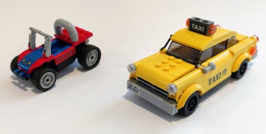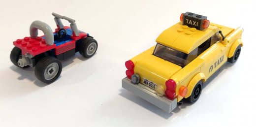Ana binaya geçmeden önce, iki yan modelden söz edelim. Bunlardan ilki, klasik bir New York taksisi. Setin oynanabilirliğini artıran bu araç, setteki birçok New York referansından biri. Bu ölçekte hem diğer LEGO taksilerinden farklı hem de klasik New York taksilerine yakın bir tasarım başarıyla sağlanmış.