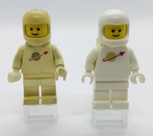 Bu minifigürler her ne kadar orijinallerinin birebir aynısı gibi görünse de yakından bakıldığında çok önemli bir fark göze çarpıyor. Classic Space minifigürlerinin kronik sorunu olan kırılan kask sorununu gidermek için, kaskın alt kısmı daha kalın tutulmuş. Bunu özellikle aşağıdaki karşılaştırma fotoğrafında daha net görebilirsiniz.