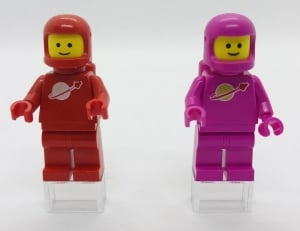 Classic Space minifigürlerinin beyaz ve sarı varyantları 1978 ve 1979’dan günümüze gelmiş olsa da pembe rengini ilk defa bu sette görüyoruz. Aşağıda, pembe minifigürün klasik kırmızı minifigüre göre renk farkını görebilirsiniz.