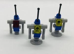 Minifigürler dışında, daha önce Benny’s Spaceship, Spaceship, SPACESHIP! (70816) setinde gördüğümüz “modern” Classic Space robotunun aynısı olan bir robot yer alıyor. Aşağıdaki fotoğrafta, önde bu robotu ve arkasında 70816’daki robotları görebilirsiniz. Bu robotu modern olarak nitelendirmemizin sebebi, doğrudan bir Classic Space robotunu baz almıyor olması ve tasarım itibariyle biraz daha canlı görünmesi.