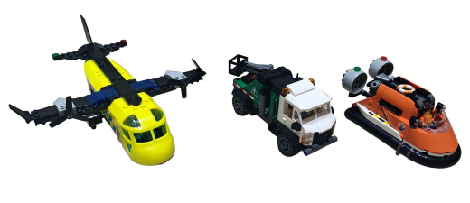 60505 Uçak, Servis Kamyonu ve Hoverkraft Karışımı: 990 yapım parçalık bu set, kendi araç kombinasyonlarınızı yapmanıza olanak tanıyan yaratıcı bir mantıkla çalışıyor. Aslında birinci olarak havalimanı için olmasa da içinden çıkan ambulans uçağı ve özellikle sepetli vinç kolu bulunan bakım kamyonu, pistteki yer hizmetleri operasyonlarını detaylandırmak için çok eğlenceli bir tamamlayıcı.